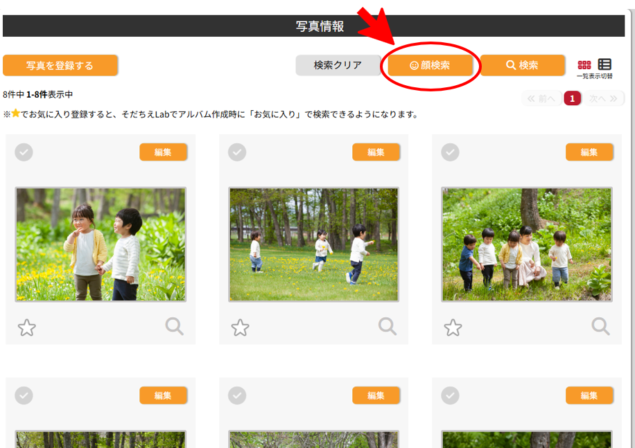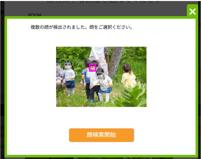 検出された顔の中から検索したいお子様の顔を選択し「顔検索開始」ボタンを押します