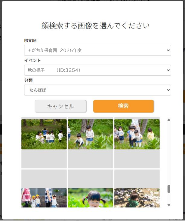 ⑤表示された候補の中から対象のお子様が写っている写真を選択します