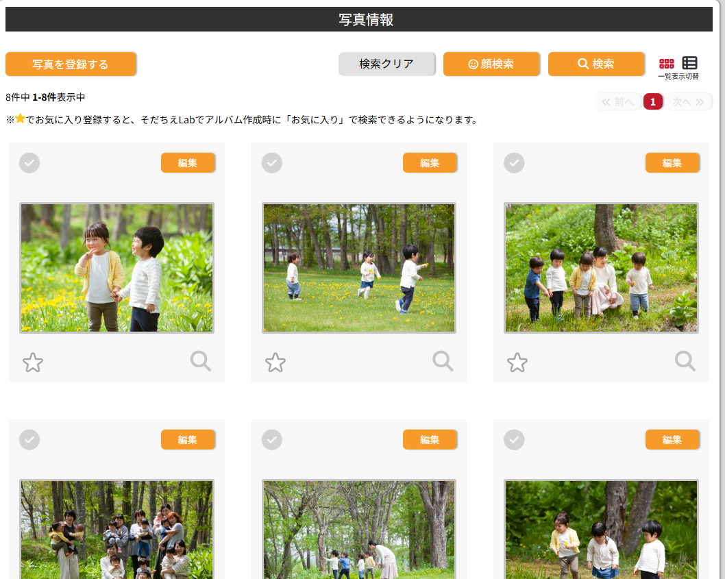 ⑥検索したお子様の写っている写真だけが一覧で表示されます