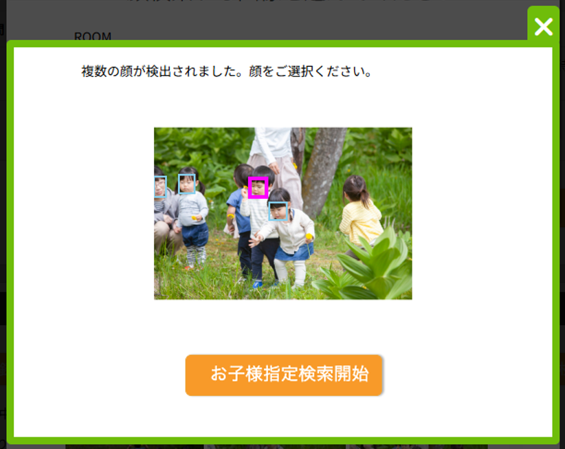 検出された顔の中から検索したいお子様の顔を選択します。