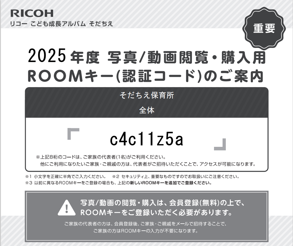 保護者様をROOMに登録するためには、ROOMキーの配布が必要です。