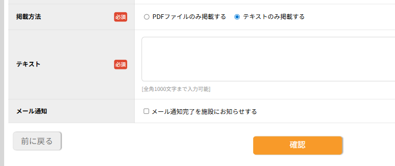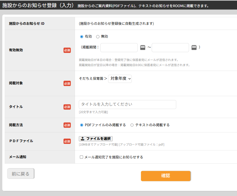 ※『メール通知完了を施設にお知らせする』にチェックをすると、保護者様へのメール通知が完了した際に、施設様にお知らせメールを送信します