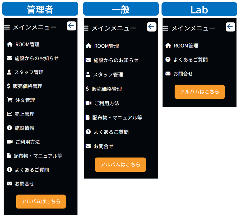 「管理者」、「一般」、「Lab」、それぞれのアカウントの違い