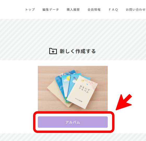 ①作成画面のトップページで『新しく作成する』の『アルバム』をクリックします。